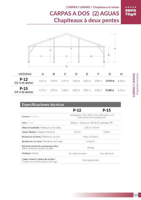 CARPAS Y JAIMAS / Chapiteaux et tentes CARPAS A DOS (2) AGUAS Chapiteaux à deux pentes CARPAS Y JAIMAS Chapiteaux et tentes 9 13