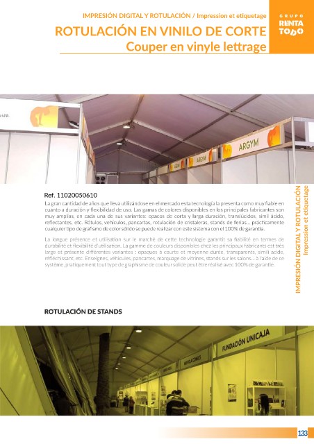 IMPRESIÓN DIGITAL Y ROTULACIÓN / Impression et eti quetage ROTULACIÓN EN VINILO DE CORTE Couper en vinyle lett rage Impression et etiquetage IMPRESIÓN DIGITAL Y ROTULACIÓN 11 133