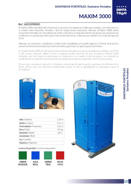 SANITARIOS PORTÁTILES /Sanitaires Portables MAXIM 3000 SANITARIOS PORTÁTILES Sanitaires Portables 3 137
