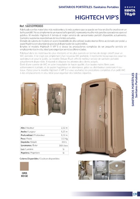 SANITARIOS PORTÁTILES /Sanitaires Portables HIGHTECH VIP’S SANITARIOS PORTÁTILES Sanitaires Portables 5 139