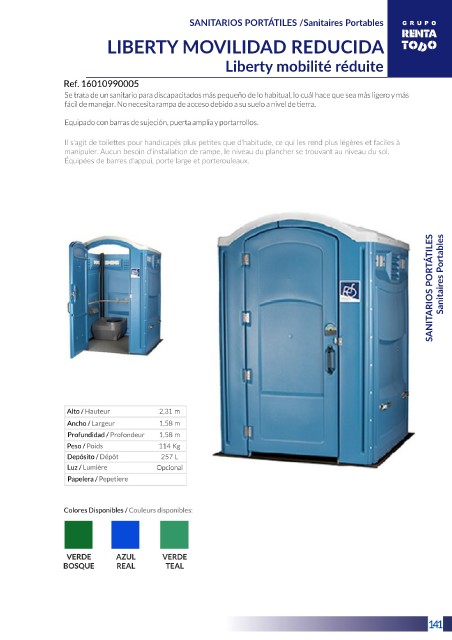 SANITARIOS PORTÁTILES /Sanitaires Portables LIBERTY MOVILIDAD REDUCIDA Liberty mobilité réduite SANITARIOS PORTÁTILES Sanitaires Portables 7 141
