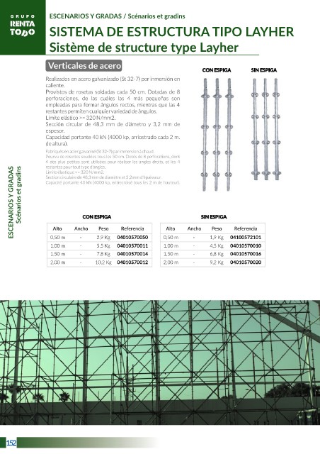 ESCENARIOS Y GRADAS / Scénarios et gradins SISTEMA DE ESTRUCTURA TIPO LAYHER Sistème de structure type Layher ESCENARIOS Y GRADAS Scénarios et gradins 4 152