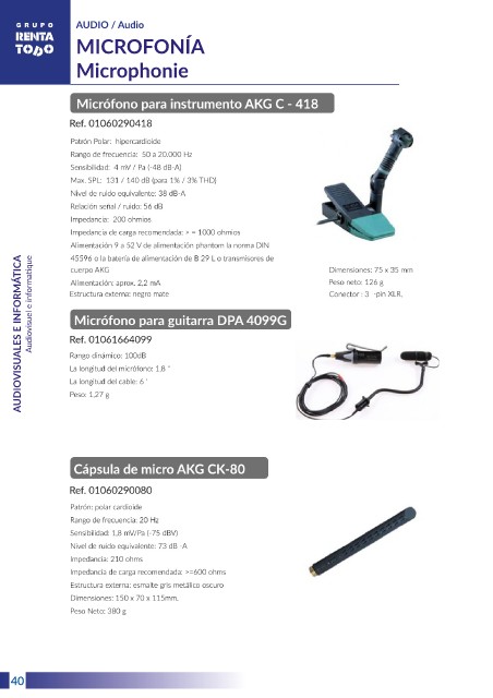 AUDIO / Audio MICROFONÍA Microphonie Audiovisuel e informatique AUDIOVISUALES E INFORMÁTICA 6 40