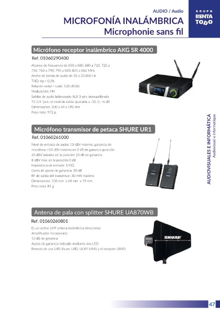 AUDIO / Audio MICROFONÍA INALÁMBRICA Microphonie sans fi l Audiovisuel e informatique AUDIOVISUALES E INFORMÁTICA 47 13