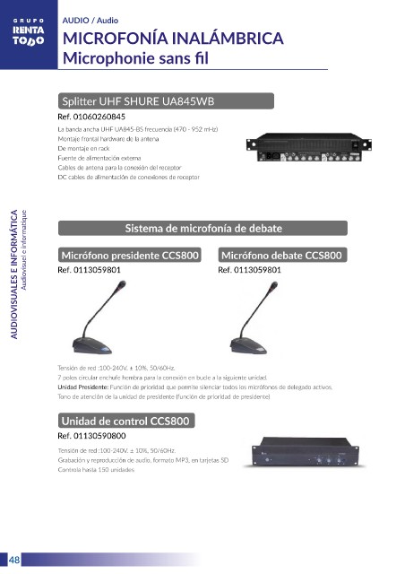 AUDIO / Audio MICROFONÍA INALÁMBRICA Microphonie sans fi l Audiovisuel e informatique AUDIOVISUALES E INFORMÁTICA 14 48