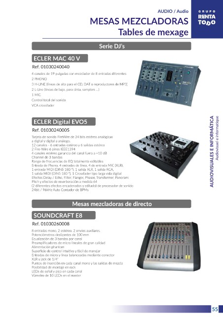AUDIO / Audio MESAS MEZCLADORAS Tables de mexage Audiovisuel e informatique AUDIOVISUALES E INFORMÁTICA 55 21