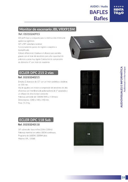 AUDIO / Audio BAFLES Bafl es Audiovisuel e informatique AUDIOVISUALES E INFORMÁTICA 59 25