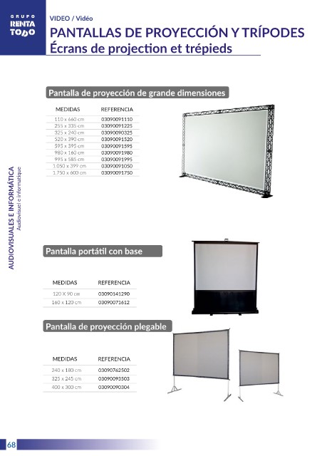 VIDEO / Vidéo PANTALLAS DE PROYECCIÓN Y TRÍPODES Écrans de projecti on et trépieds Audiovisuel e informatique AUDIOVISUALES E INFORMÁTICA 34 68