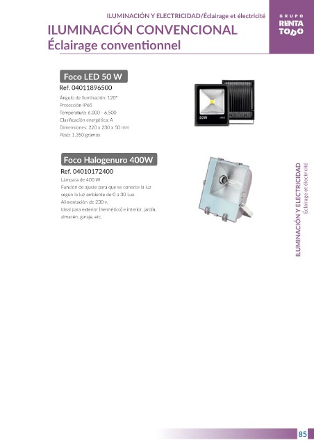ILUMINACIÓN Y ELECTRICIDAD/Éclairage et électricité ILUMINACIÓN CONVENCIONAL Éclairage conventi onnel Éclairage et électricité ILUMINACIÓN Y ELECTRICIDAD 85 11