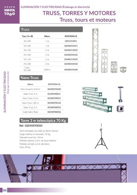 ILUMINACIÓN Y ELECTRICIDAD/Éclairage et électricité TRUSS, TORRES Y MOTORES Truss, tours et moteurs Éclairage et électricité ILUMINACIÓN Y ELECTRICIDAD 12 86