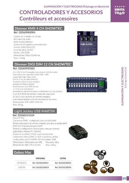 ILUMINACIÓN Y ELECTRICIDAD/Éclairage et électricité CONTROLADORES Y ACCESORIOS Contrôleurs et accesoires Éclairage et électricité ILUMINACIÓN Y ELECTRICIDAD 89 15